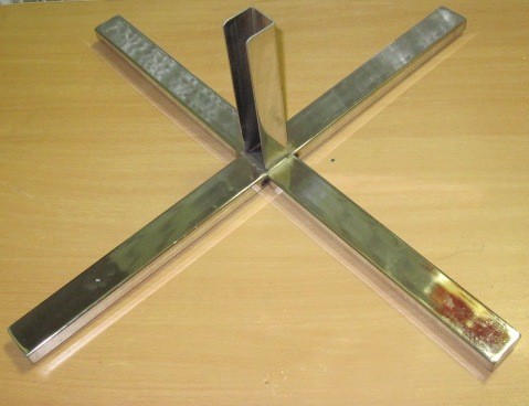 Стальная хромированная опора. С нижней части основания предусмотрены крепления для колёсиков или регулировочных ножек.