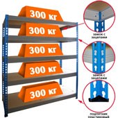Размер ВхШхГ: 200x152,5x61 см. Пять полок, нагрузка до 300 кг на полку.